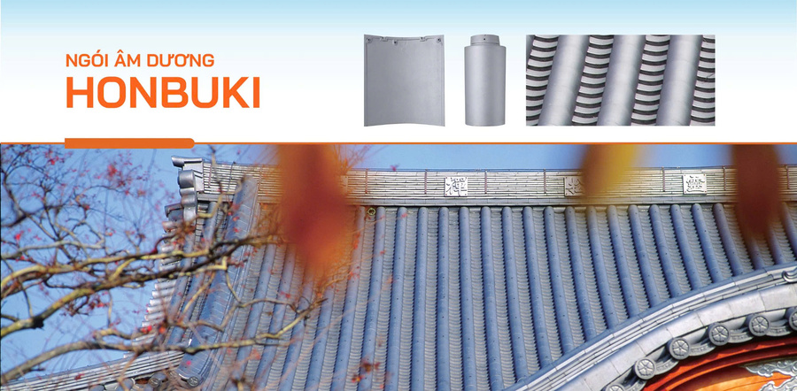 Ngói âm dương Honbuki được du nhập từ Nam Á cách đây khoảng 1400 năm và được coi là ngói truyền thống của Nhật Bản. Ngói Honbuki được sử dụng trong các công trình đền, chùa và lâu đài. Tên gọi Honbuki trong tiếng Nhật mang ý nghĩa là “mái ngói trang trọng”. Ngói âm dương Honbuki gồm ngói âm (viên ngửa, hõm xuống) và ngói dương (viên úp, dạng nửa ống). Nguyên liệu đất sét để sản xuất ngói Honbuki được khai thác từ vùng Mikawa thuộc tỉnh Aichi (Nhật Bản) tạo nên phong cách đặc trưng trong kiến trúc truyền thống Nhật Bản. Ngói âm dương Honbuki màu xám khói trông sang trọng và phù hợp với thiết kế hiện đại.
