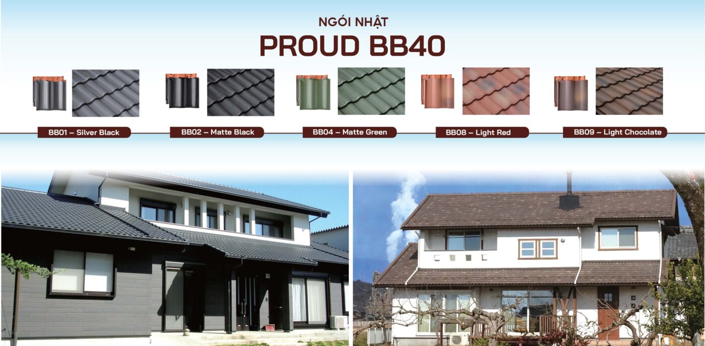 Proud BB40 là dòng ngói sóng duy nhất của ngói Nhật Eishiro. Ngói sóng nhỏ, chắc chắn và rất cá tính. Nếu như dòng ngói Proud BB40 không tráng men có màu nhạt (Light Red – đỏ nhạt và Light Chocolate – nâu nhạt) theo phong cách tươi sáng Địa Trung Hải thì các mẫu tráng men màu trầm như xám mờ, đen mờ và xanh lá mờ lại có cảm giác trầm hơn, phù hợp với phong cách Nhật Bản cũng như phương Tây.